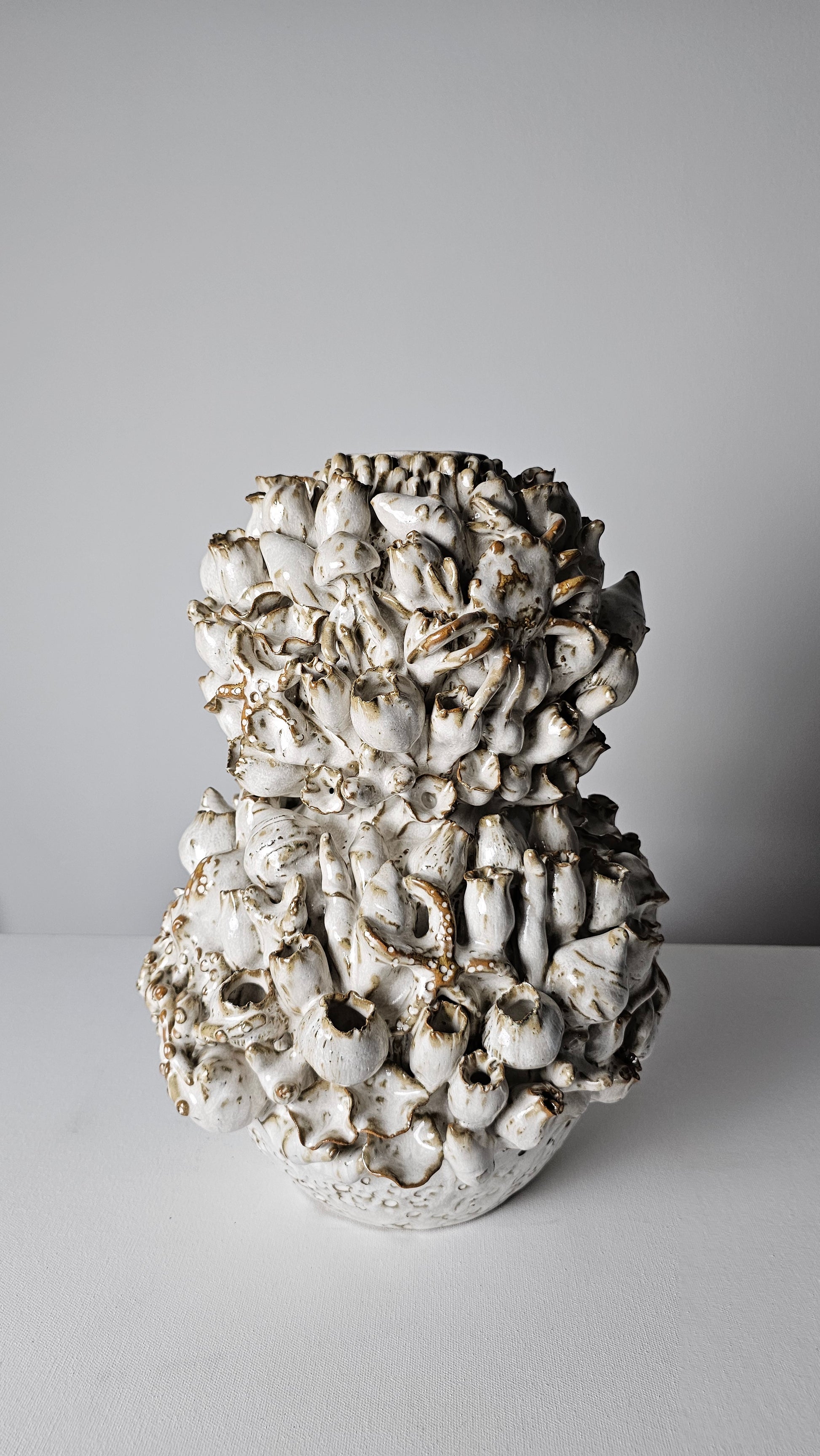 A sculptural statement piece inspired by the wild textures of the ocean floor. Handcrafted with intricate barnacle-like forms and delicate starfish impressions, this vase is part of our Atlantis Collection—where marine memory meets artisanal mastery.