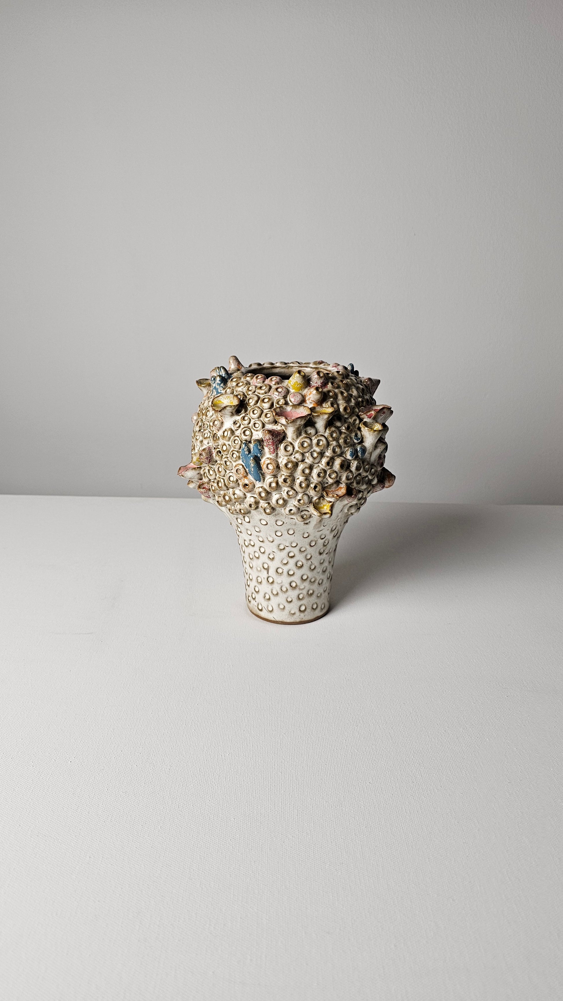 Brimming with playful texture and vibrant color, the Atlantis Joy Vase is adorned with hand-shaped blooms and raised organic patterns reminiscent of a coral garden. Each colorful bloom is individually glazed, creating a lively, tactile surface that celebrates creativity and craftsmanship.