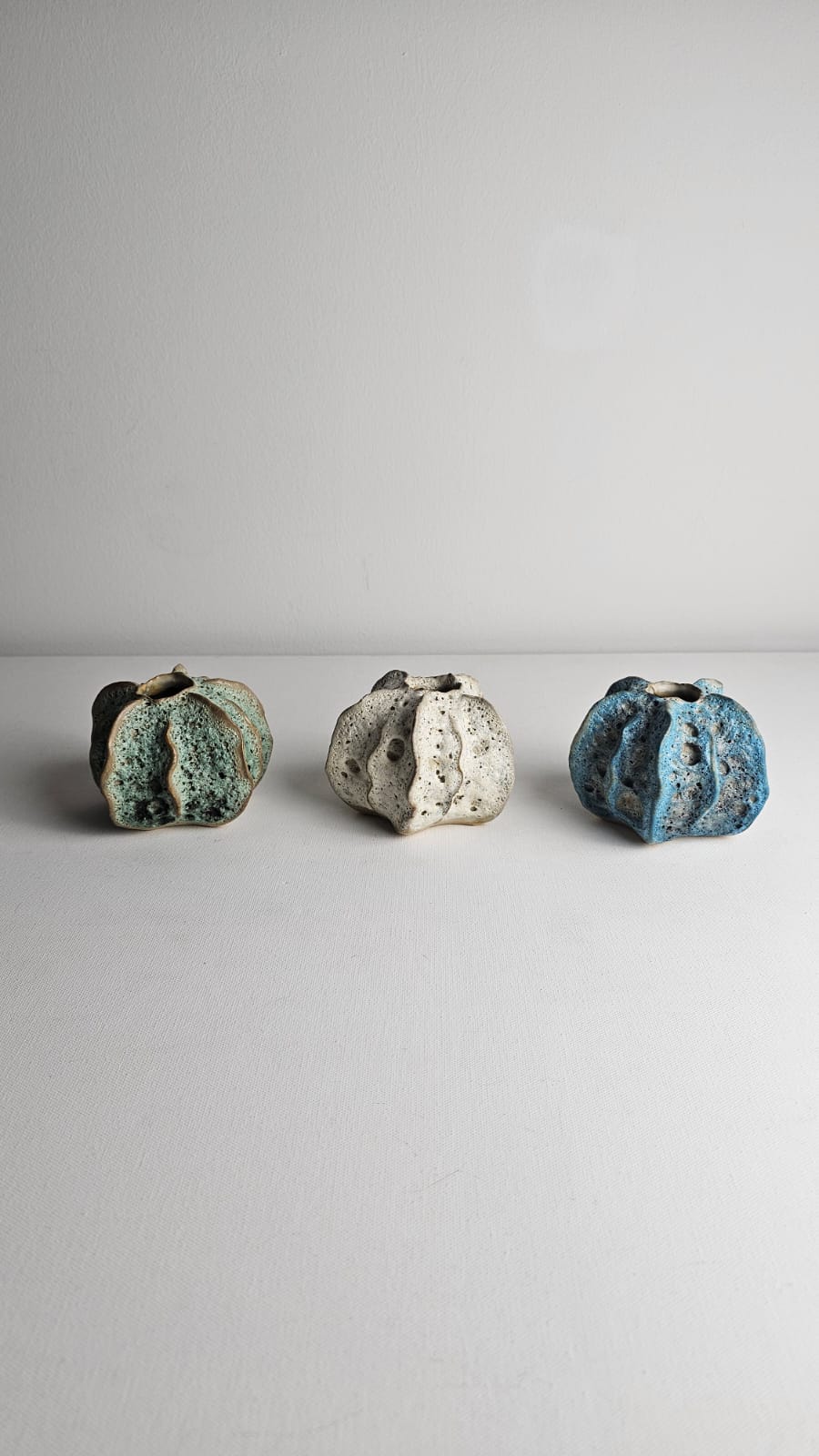 Atlantis Coral Bud is part of the Atlantis Collection inspired by the organic shapes of underwater coral formation. Each piece is uniquely shaped, with intricate details and a speckled finish that brings a natural and rustic charm. Ideal for a holding a single flower or displayed on its own as a sculptural element, this vase will bring a touch of elegance to any space. Available in three colours, blue, green and natural stone.