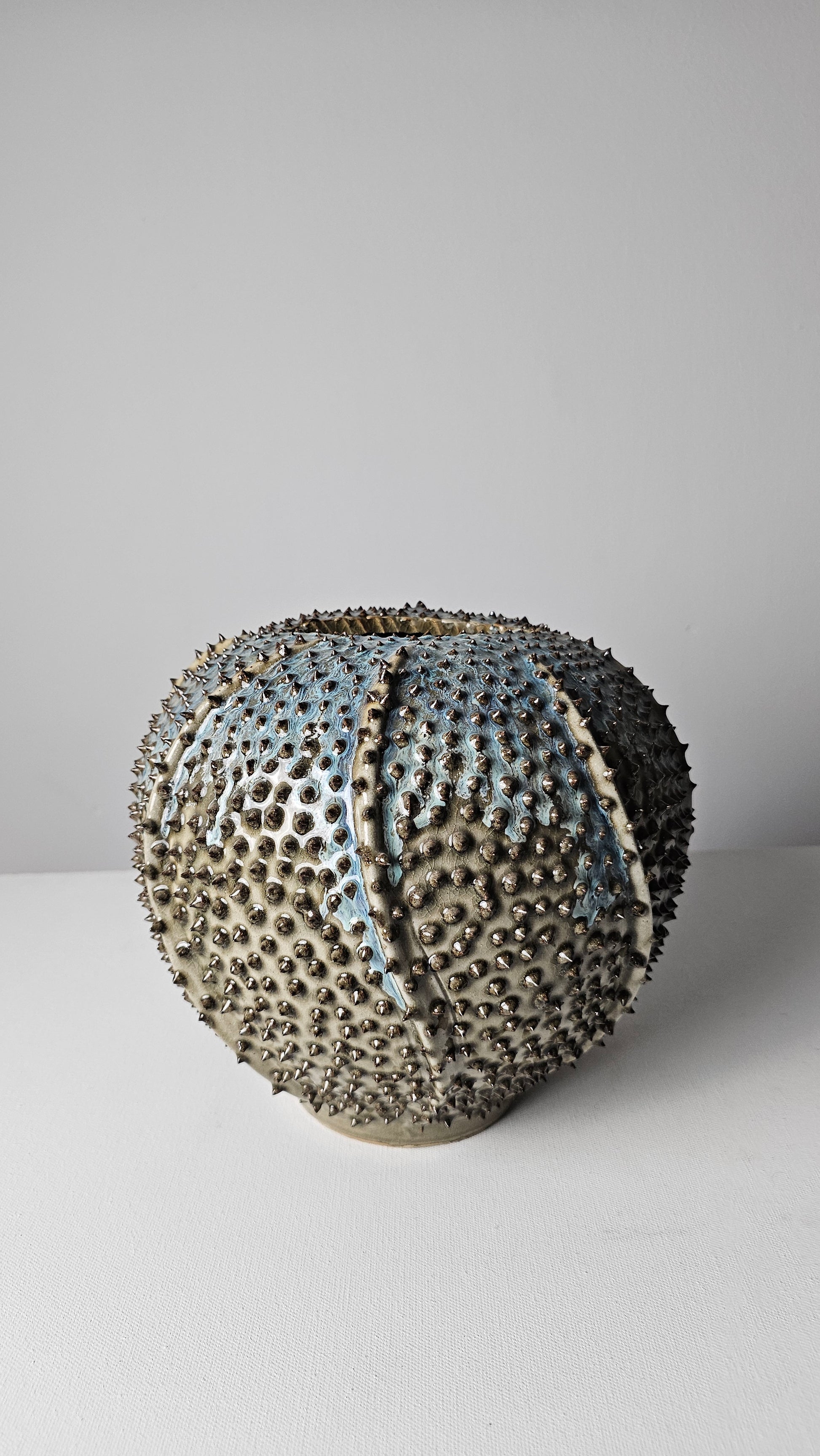 Inspired by the rugged beauty of the sea, the Atlantis Thorn Coral Vase features a rounded form with striking thorn-like textures reminiscent of coral and sea urchins. Its earthy glaze and intricate detailing make it a bold decorative statement. Perfect as a standalone art piece or paired with minimalist blooms.