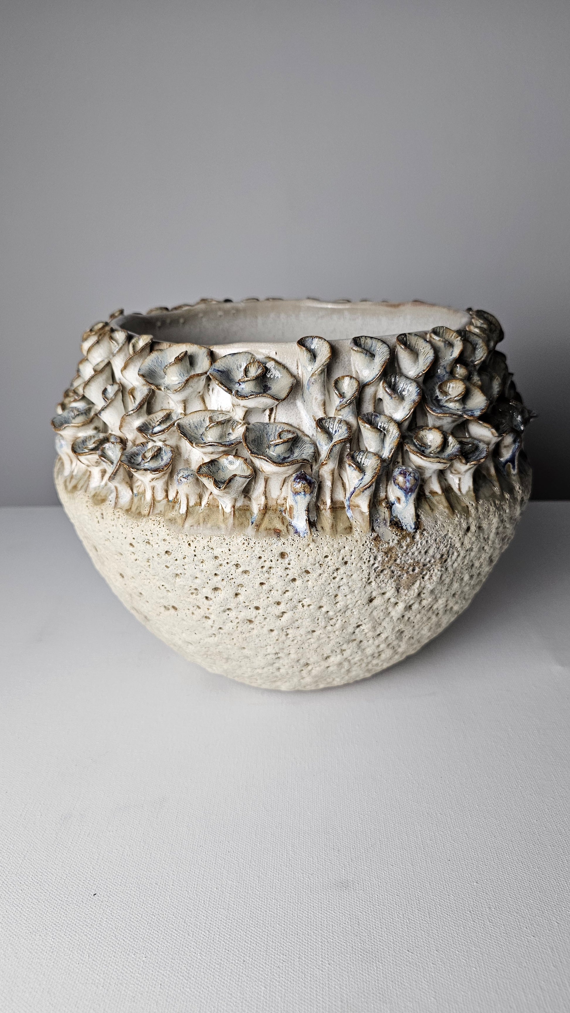 A poetic fusion of sea and bloom, the Atlantis Whispering Lily Vase is adorned with trumpet-shaped forms evoking ocean polyps and delicate lily petals. Each element is meticulously hand-sculpted and glazed in soft earth and ocean hues, creating a richly textured, tactile surface.