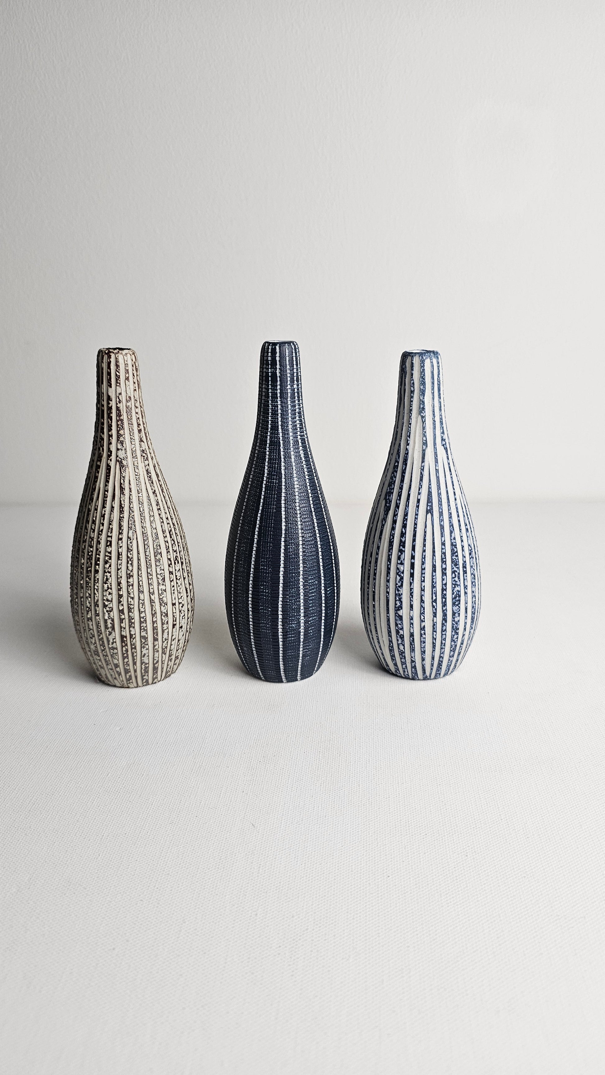An adorable ceramic creation that draws inspiration from the iconic shape of a bowling pin. This uniquely designed vase combines functionality with artistic flair, making it a captivating addition to any space. It features a sleek and elongated form, replicating the elegant curves of a bowling pin.