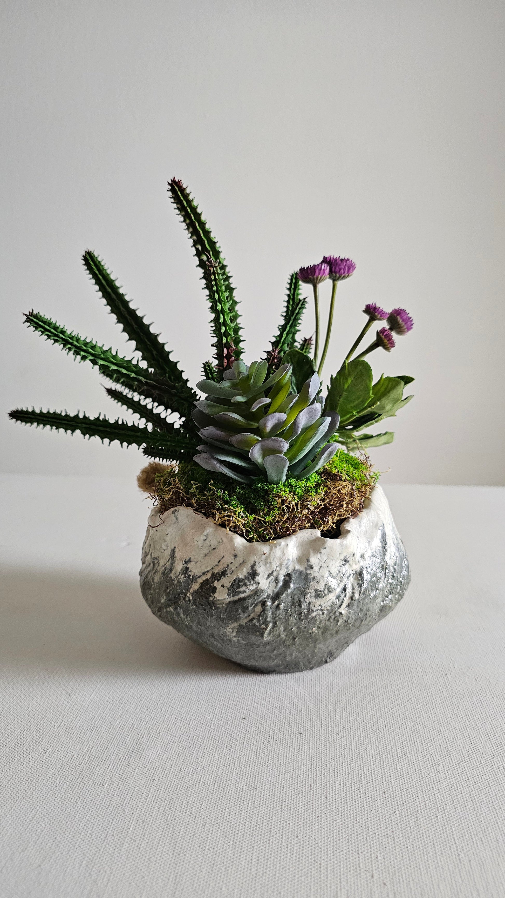 Introducing "Cradle" - more than just a plant pot, it's a nurturing embrace captured in cement. Inspired by the timeless love of a mother for her child, Cradle is designed to safeguard and cherish your green companions. Each pot cradles an artificial micro garden, a symbol of tender care, yet offers the flexibility to nestle your cherished bonsai or living plants. Let Cradle be the guardian of your botanical treasures, offering both protection and love, just like a mother's comforting arms.