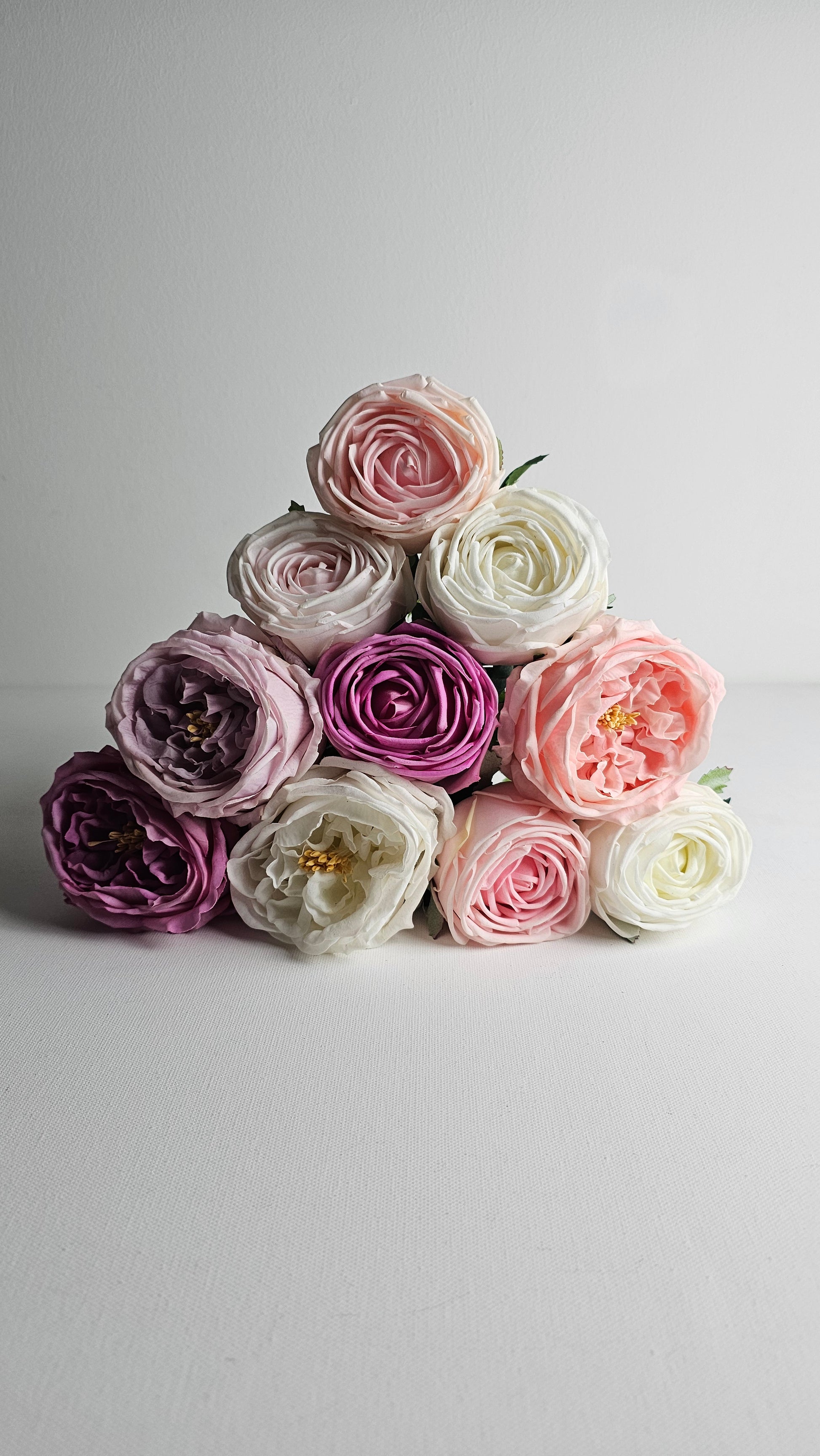 Handmade English roses are crafted with meticulous care, each petal is individually shaped and assembled. Their lifelike appearance and touch are a testament to skilled artisanship, capturing the essence of real roses.