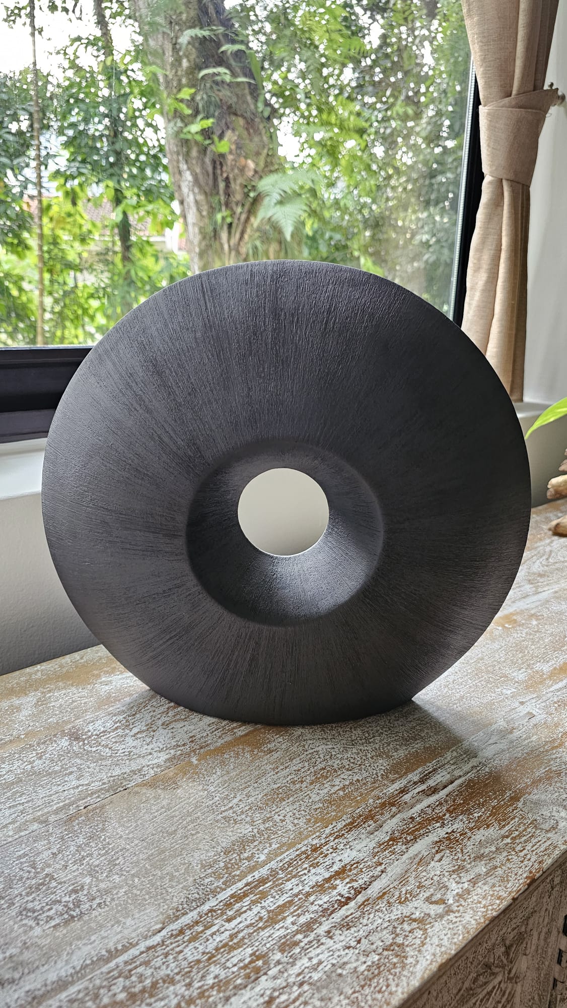 Introducing "I See You," a unique round vase that is sure to catch your eye. Handcrafted with care, this ceramic vase features a striking design with a hole in the center, adding a touch of whimsy to your decor.