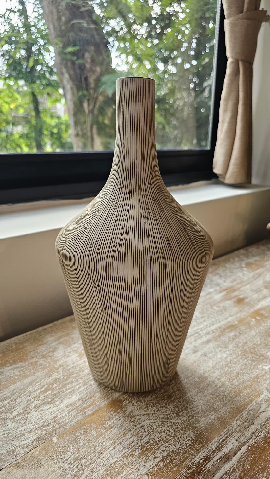 Introducing our elegant and sophisticated "Decanter" ceramic vase, the perfect addition to any stylish home. With its long and slender neck, this vase resembles a decanter, adding a touch of refinement to your floral arrangements.