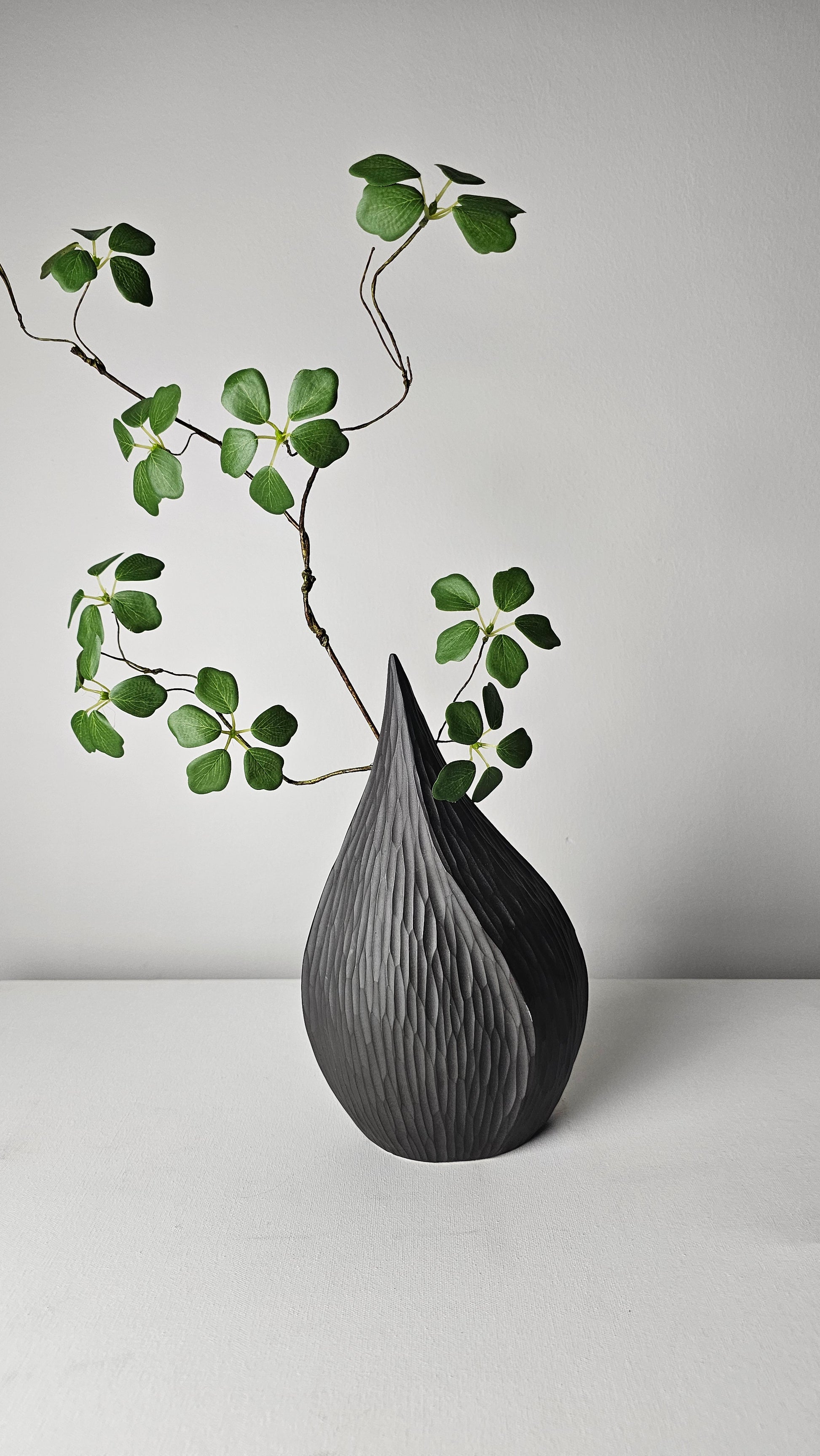 A perfect combination of sleek and chic. With a unique shape that resembles a delicate water droplet in motion, this vase will add a touch of elegance to any room. Its pointy top and rounded bottom create a beautiful contrast that will highlight the beauty of any flower arrangement you put inside.
