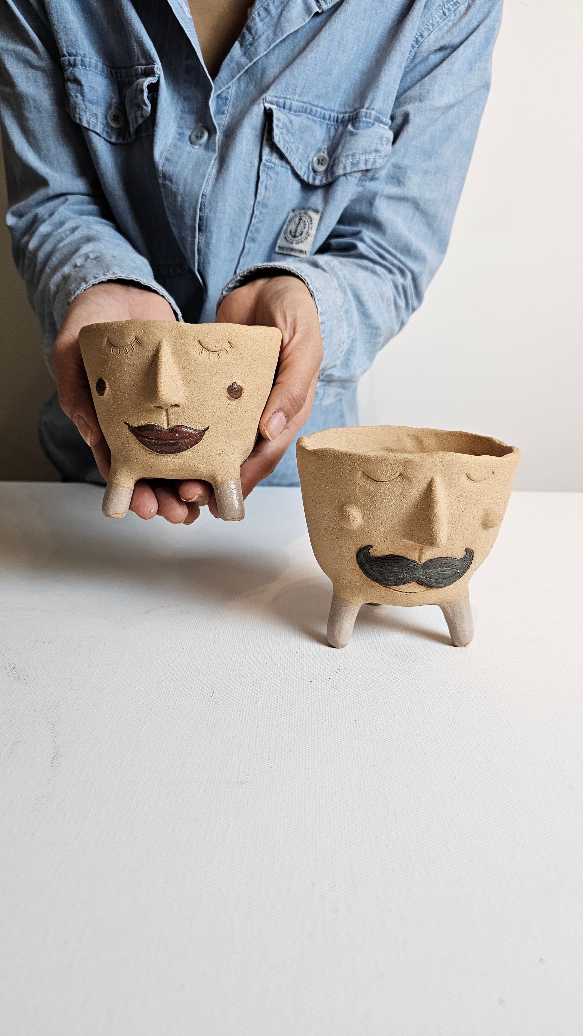 Introducing our charming handmade ceramic pots, each meticulously crafted to depict a loving couple. These exquisite pieces add a touch of romance and warmth to any space, making them perfect for holding small plants or trinkets. Elevate your decor with these unique and heartfelt creations, each one a testament to the beauty of love and craftsmanship.