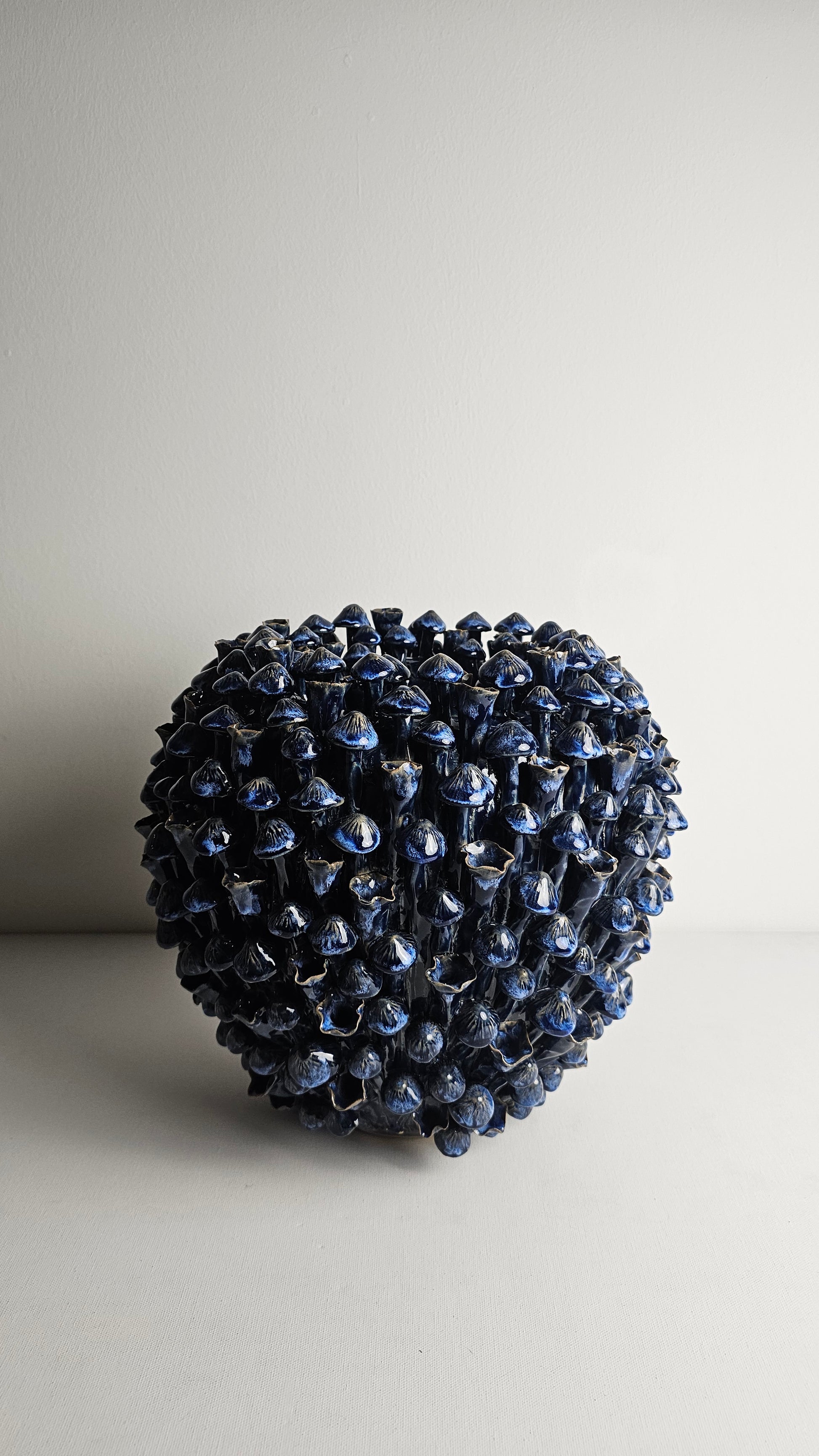 Midnight Coral is part of the Midnight Blue Collection. Inspired by the beauty of the ocean at night, the Midnight Coral is a bold and textured masterpiece. It is striking and its deep-sea coral formations is a perfect statement piece for any space. Glossy finish.
