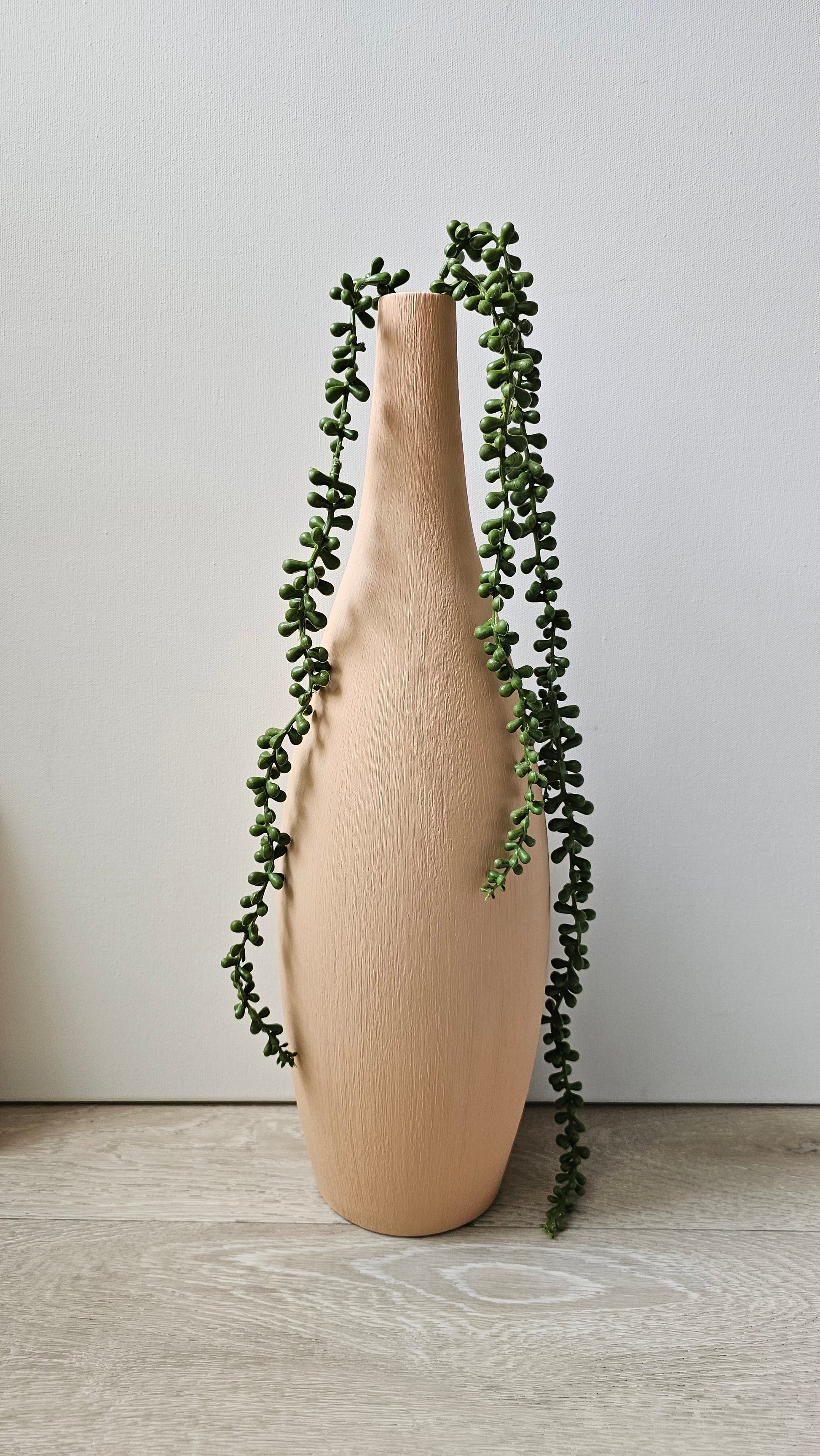 A captivating masterpiece that embraces modern aesthetics with its sleek and elongated design. Inspired by elegant contours, this vase embodies a perfect balance of elegance and minimalism. Serene water is one of our tallest vases.