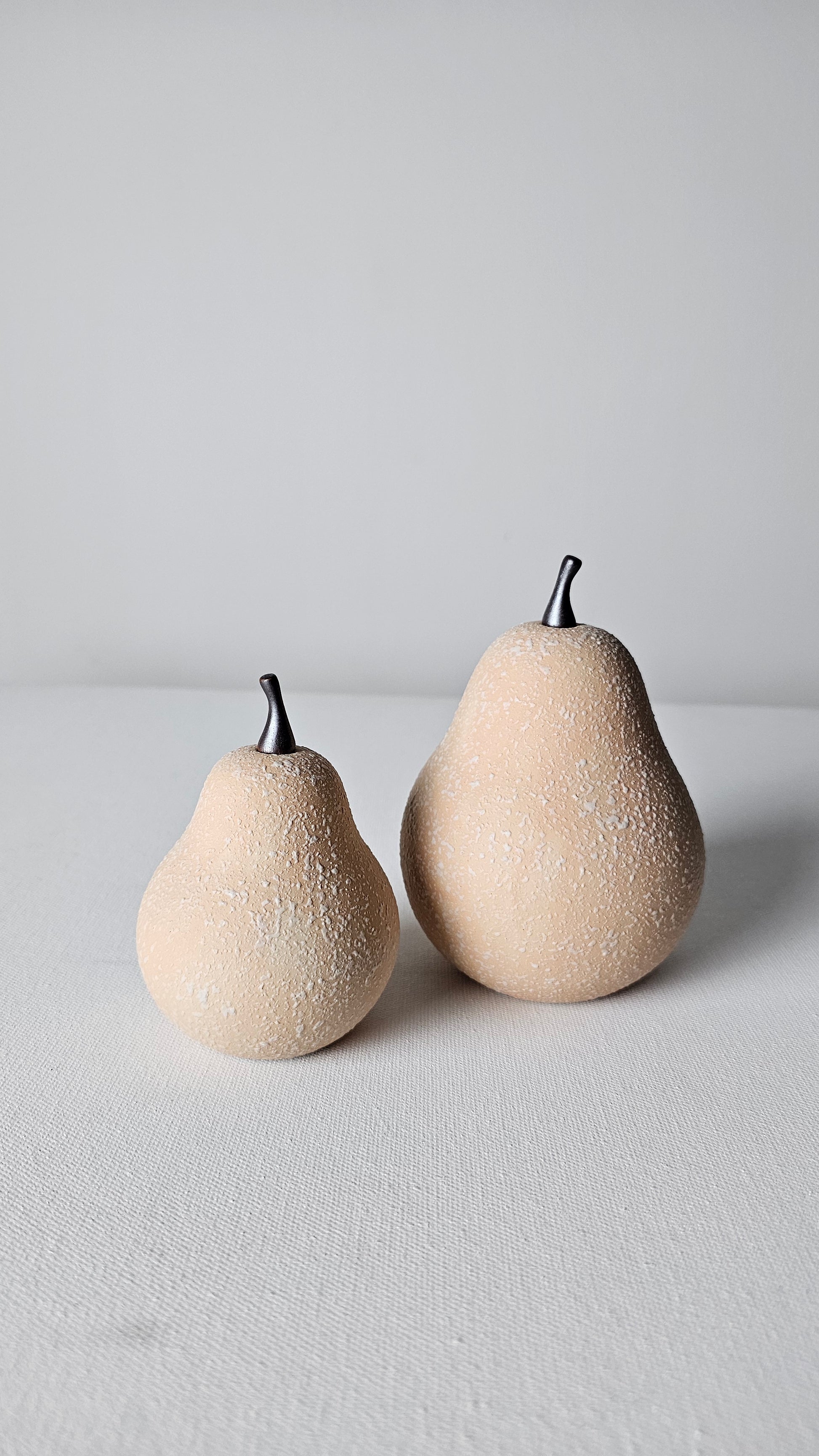 Elegant, quiet, and beautifully tactile—Serenity Pear is a sculptural interpretation of nature’s gentlest form. Whether styled as a pair or displayed solo, these ceramics add a soft, organic presence to any shelf, console, or tabletop.