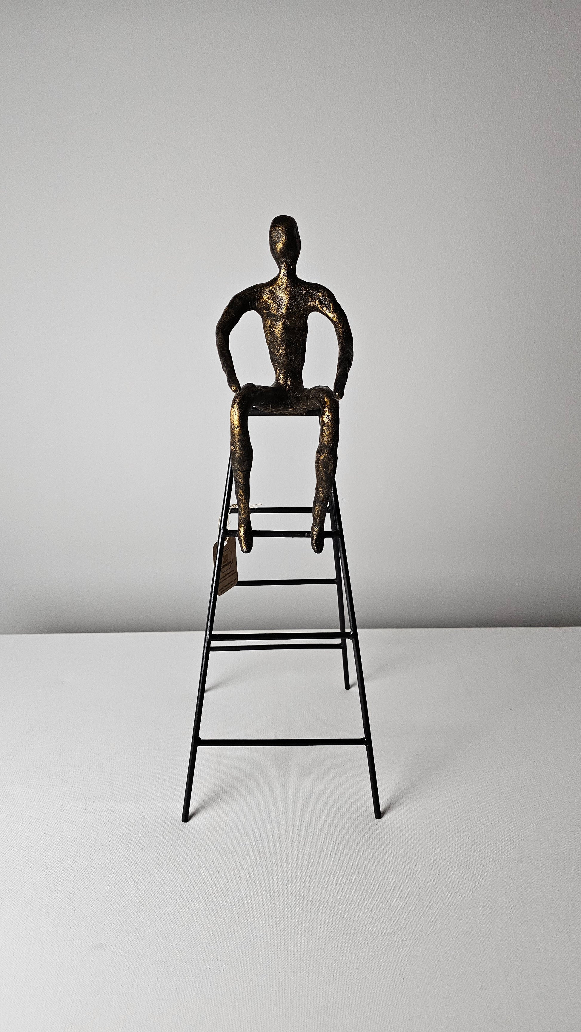 Capturing a moment of pause before the next step. The textural, gold-flecked figure provides a beautiful contrast to the smooth, clean lines of the black ladder. A modern piece to inspire forward momentum.