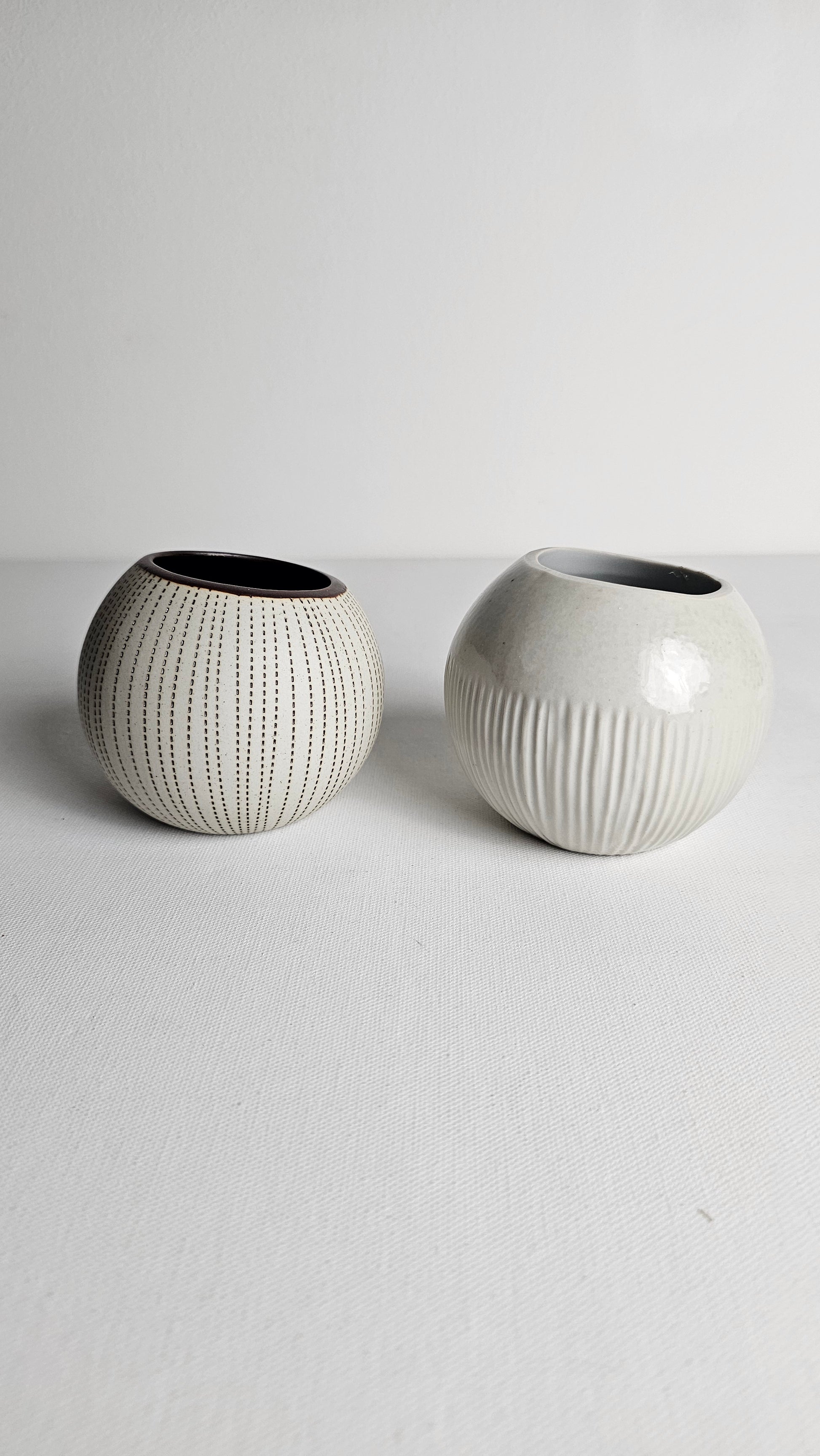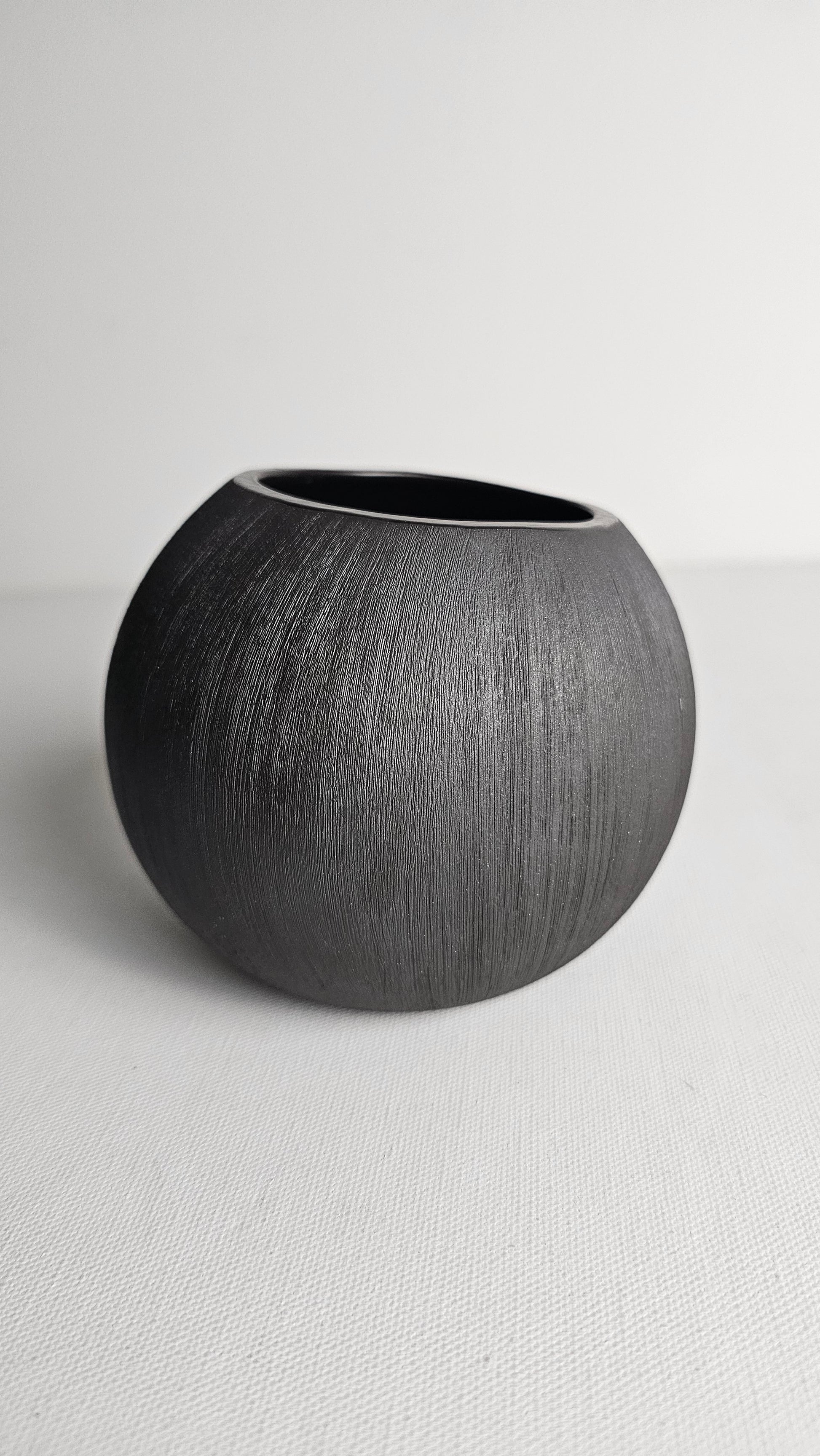 A small ceramic masterpiece that combines elegance with a playful touch. Shaped like a spherical cup, this vase exudes a unique and adorable appeal.