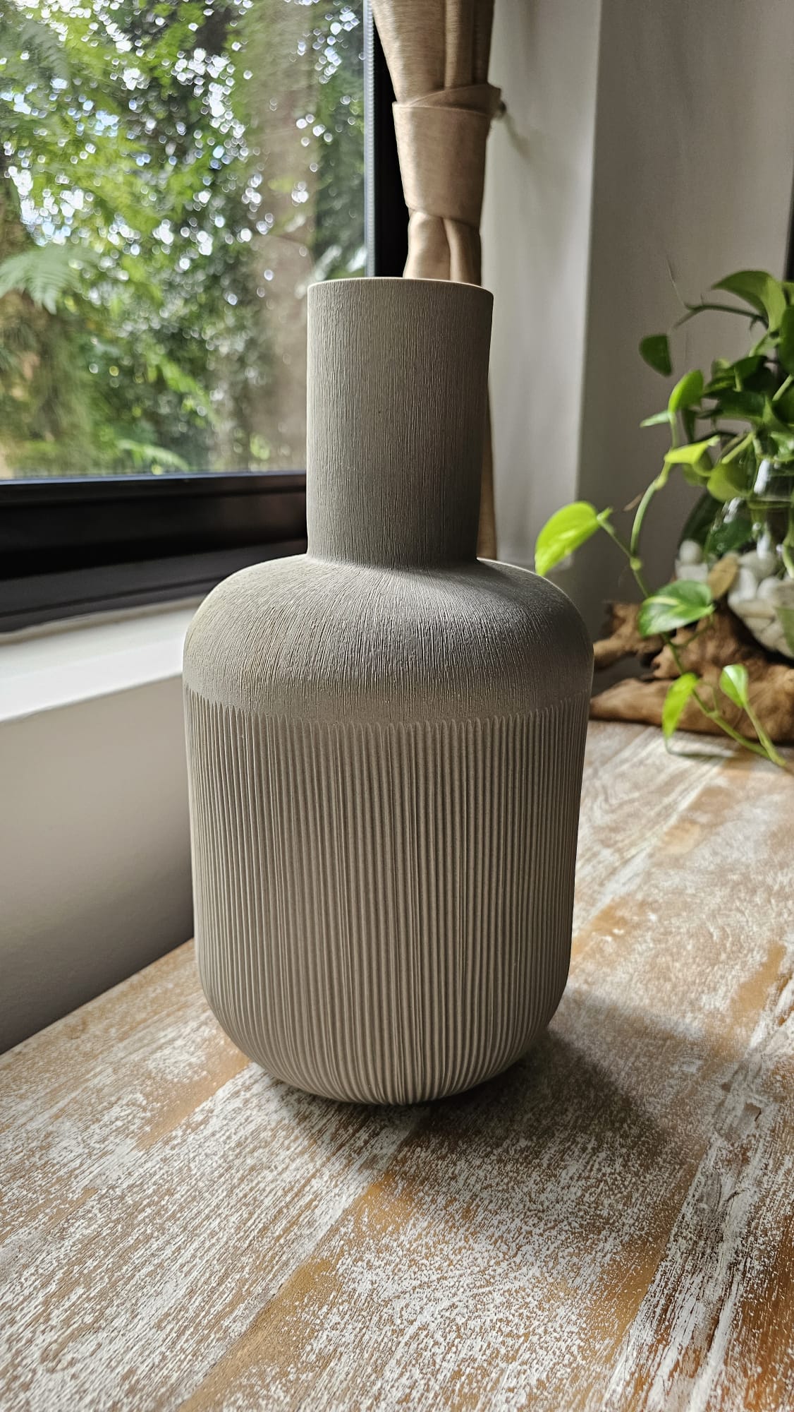 Introducing our captivating "The Modern Take" Vase, a distinctive ceramic piece that makes a bold statement in your living space. The unique combination of the cylindrical shape and flat bottom adds visual interest and stability to the vase, it's generous neck allowing you to showcase your favorite floral arrangements with confidence and style.