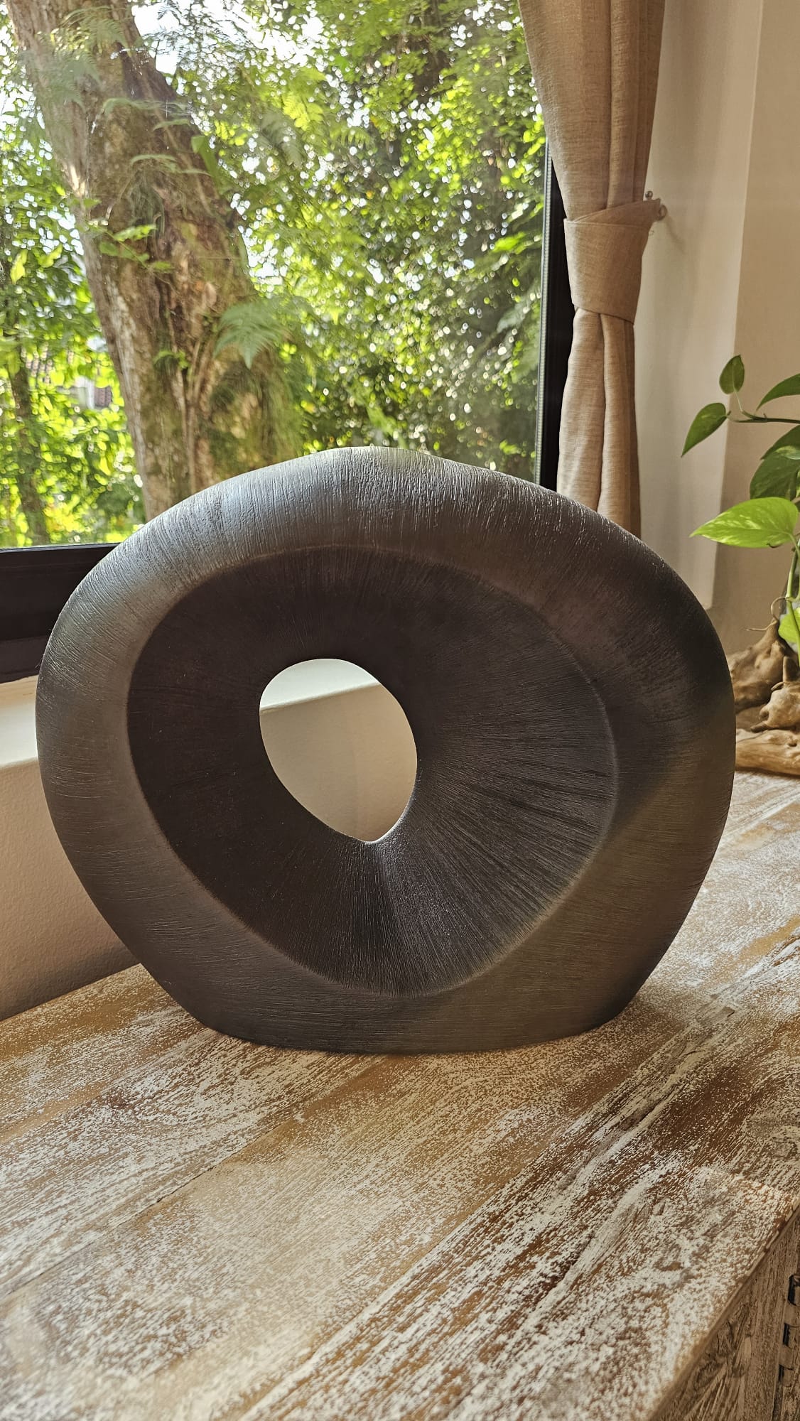 Introducing "The Ocean Stone," a captivating ceramic vase that embodies the essence of the ocean's serenity. With its elegant design and a mesmerising swirl hole in the middle, this exquisite piece adds a touch of tranquility and natural beauty to any space. Crafted with meticulous attention to detail, "Ocean Stone" is a true statement of artistry and a perfect vessel to showcase your favourite blooms. Elevate your interior with the calming allure of the sea.