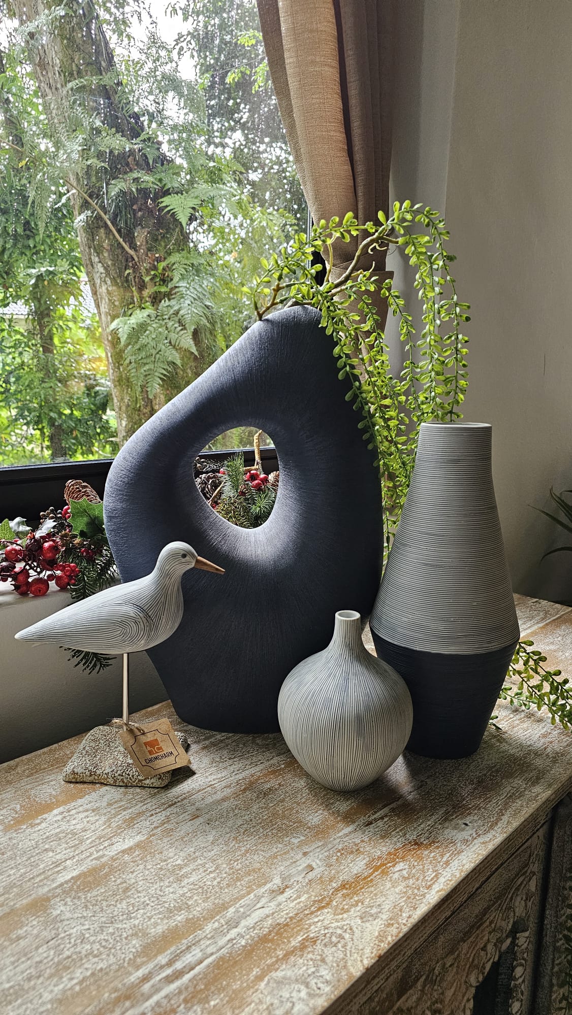 Introducing The Signature Vase XL, a masterpiece of natural beauty and exquisite craftsmanship. This stunning vase features a unique and natural shape with a captivating hole in the middle, adding an intriguing element to any space. Each piece is meticulously handcrafted with utmost care and attention to detail, showcasing the artisan's skill and dedication.